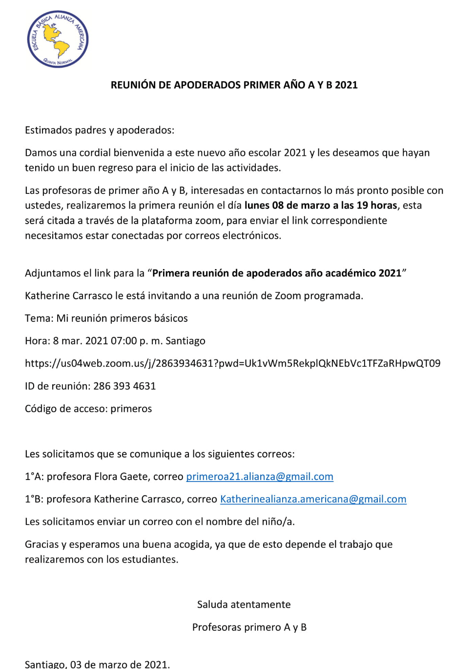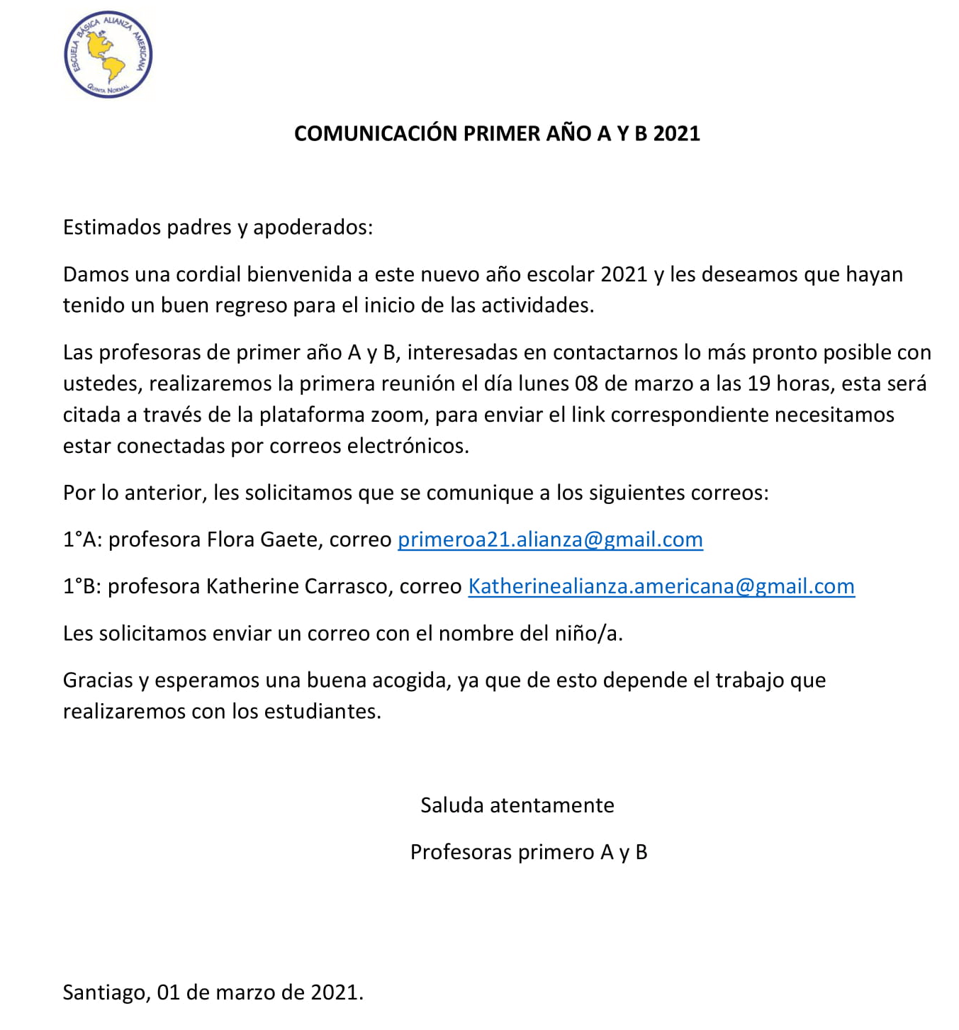 Comunicado 1ro A y B