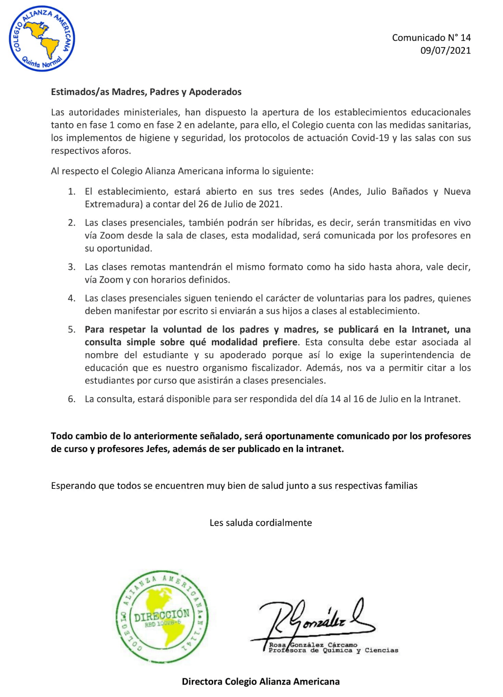 A TODA LA COMUNIDAD EDUCATIVA